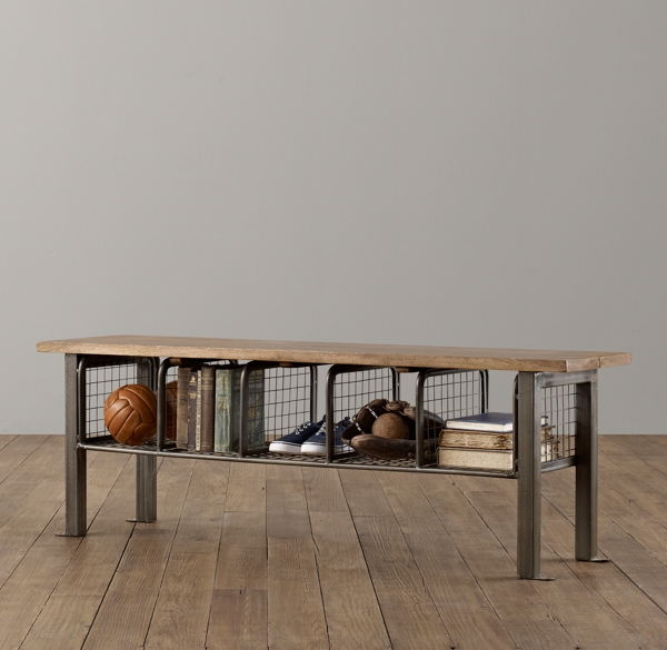 11 5 6 ft. Position the chest at the foot of your. 42 industrial metal wood entry bench. Elegant storage bench in industrial design they designed this elegant bench that gives you a comfortable seat an additional storage compartment and a mesh shelf.