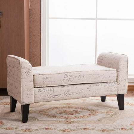 Toni Off White 37 Inch Sign Pattern Storage Ottoman Bench